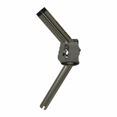 Porta canne amovibile ruotante e basculante per il Big Game, Concepito per il combattimento con canna innestata. E’ in grado di ruotare di 180° sull’asse orizzontale e 90° sull’asse verticale ponendo, cosi la canna sempre nella direzione della corrente o della ferrata. Questa operazione viene eseguita velocemente facendo scorrere il perno nelle apposite guide in modo da variare l’angolo di pesca in quattro posizioni. Rotazione bloccabile con perno a scatto per mantenere la canna nella direzione voluta e assecondare le proprie esigenze di orientamento della canna.