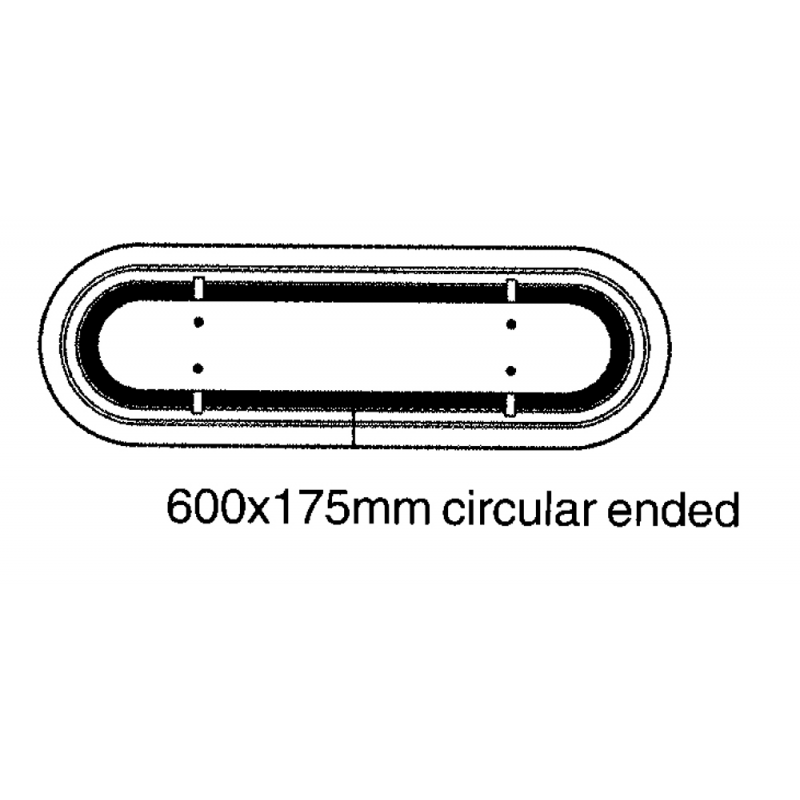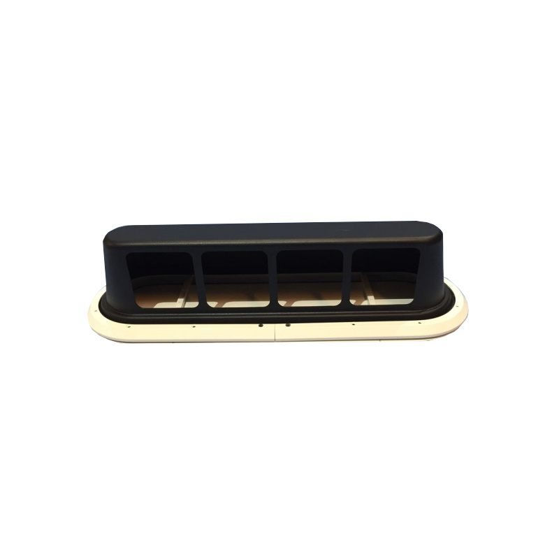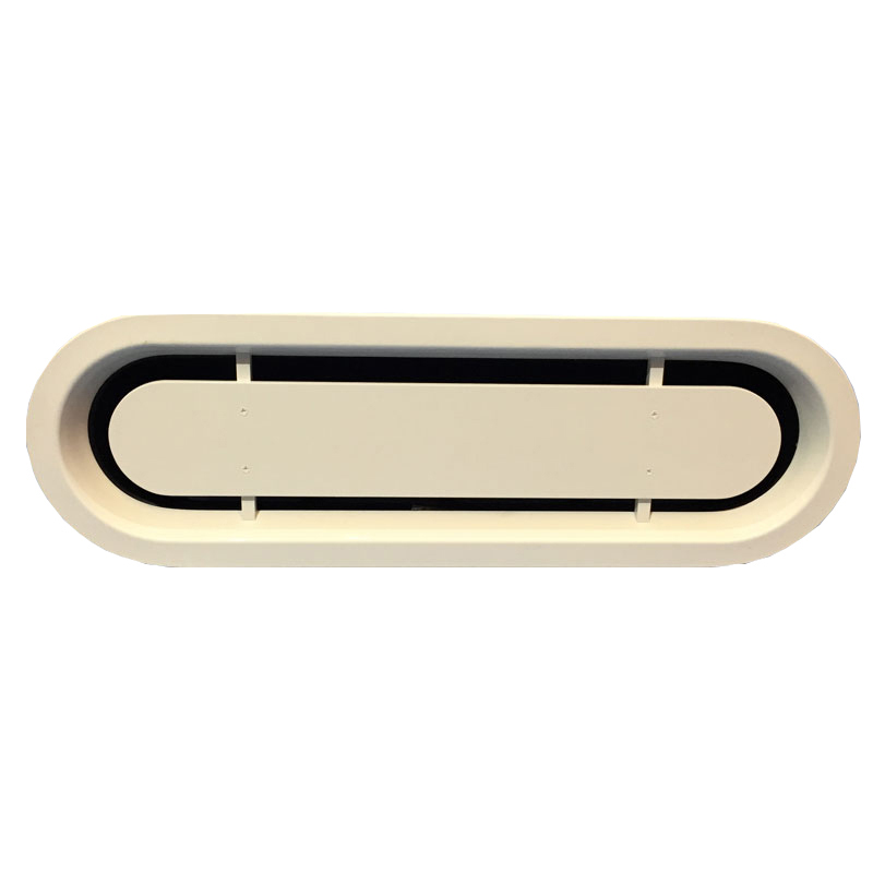 Presa aria Gebo in lega leggera verniciata bianca (RAL9010) ad incasso completa di convogliatore posteriore che impedisce l’ingressodell’acqua dall’esterno. Dim. mm. 600 x 175, raggio mm 88
