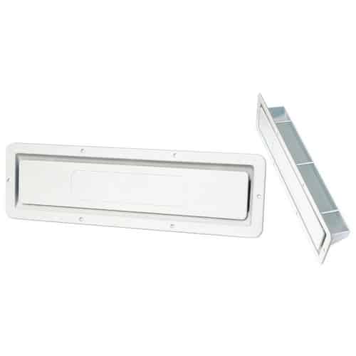Presa d’aria rettangolare in materiale plastico. Colore bianco.