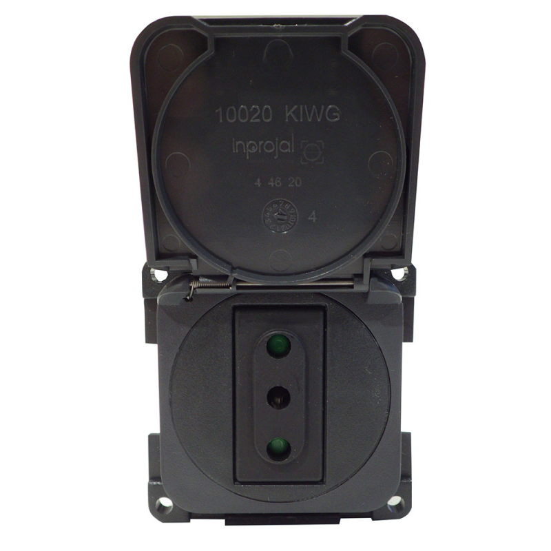 Presa Italiana 230 V con coperchio e protezione posteriore per impianto equipaggiamento elettrico modulare in plastica grigia ral 7015