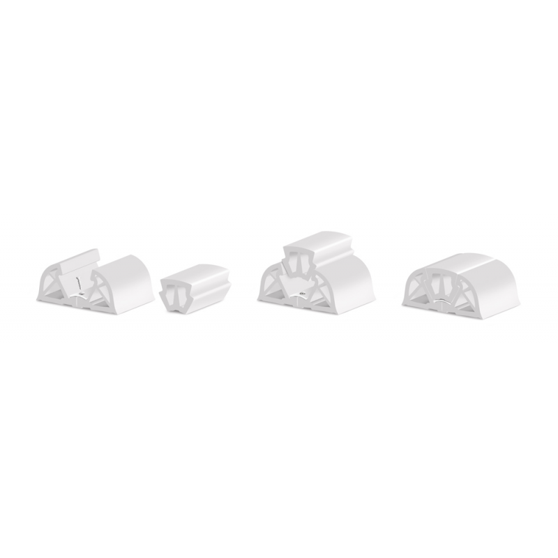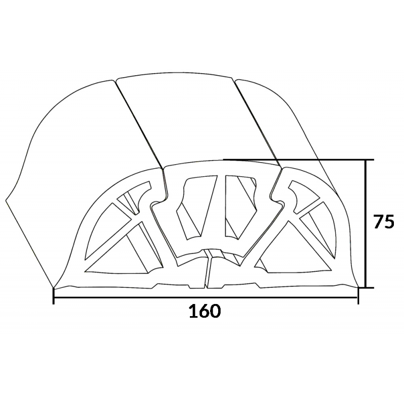 Profilo in PVC che coniuga una elevata potenza ad una assoluta leggerezza. Concepito con una triplice struttura in pvc con ampie camere d’aria interne, raggiunge una elevata capacità di assorbimento agli urti mai raggiunta prima. Il profilo di base composto da tre pezzi è fissato con l’ausilio di una barra di acciaio preforata e svasata (art. 6566125/6). Il profilo di colmo è posizionabile a pressione. Colore bianco. Barra mt. 2.