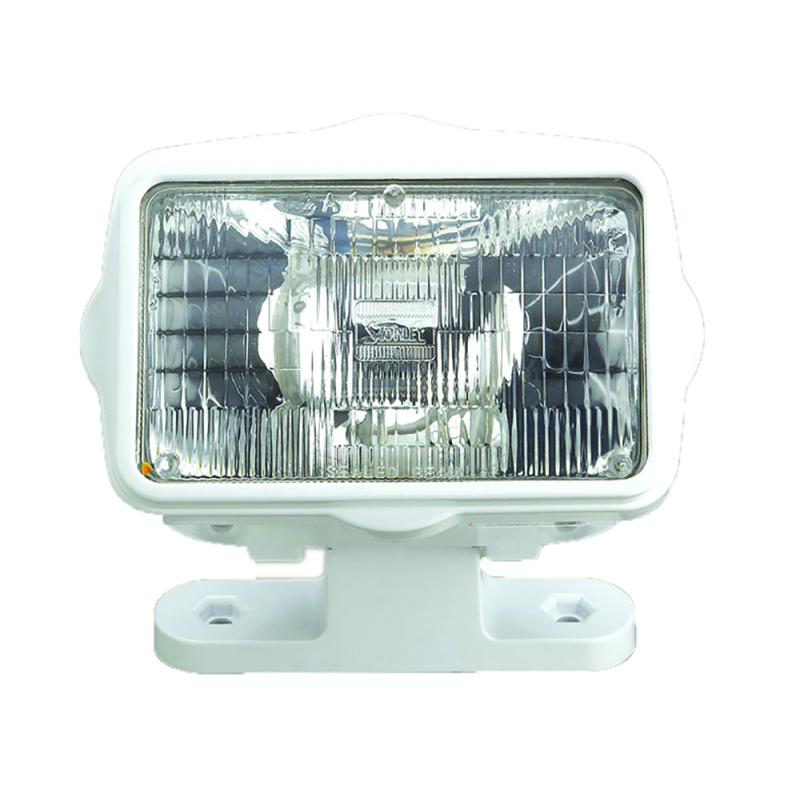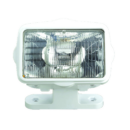 Proiettore a luce diffusa corpo in ABS bianco. Staffa di fissaggio snodata, orientabile in senso verticale. Dimensioni proiettore mm. 180x110x125h, base mm. 165×45. Alim. 12V 60W.