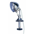 Proiettore in acciaio inox orientabile a mano dall’interno della cabina, orizzontale di 360° e verticale di 45°, lampadina alogena da 55 W., 12 V.
