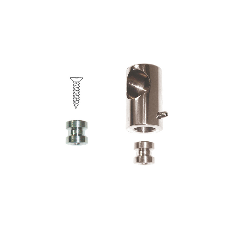 Raccordo centrale per corrimano in acciaio inox AISI 316 ricavato dal pieno, altezza mm. 65, Ø mm.35, per tubo Ø mm. 25. Permette il montaggio con una semplice vite adatto dove non è possibile il fissaggio con prigioniero.