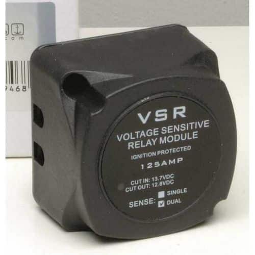Ripartitore di carica compatto VSR per gestire contemporaneamente la carica di due batterie con un solo alternatore. All’avviamento del motore gestisce la ricarica della batteria principale poi, una volta caricata la prima, ricarica in parallelo la seconda batteria, Amotore spento, se la tensione delle batterie scende sotto i 12.8V, stacca il circuito per evitare lo scarico delle batterie.