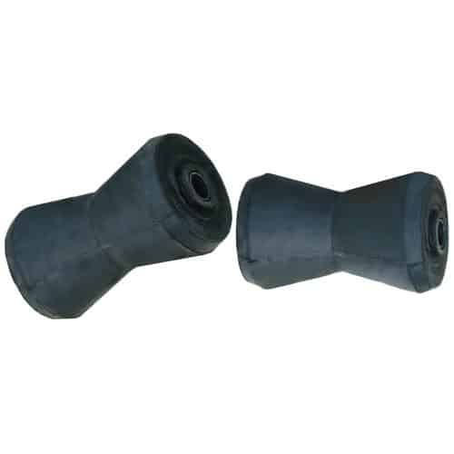 Rullo centrale in gomma di colore nero. Accessori alaggio per carello rimorchio.