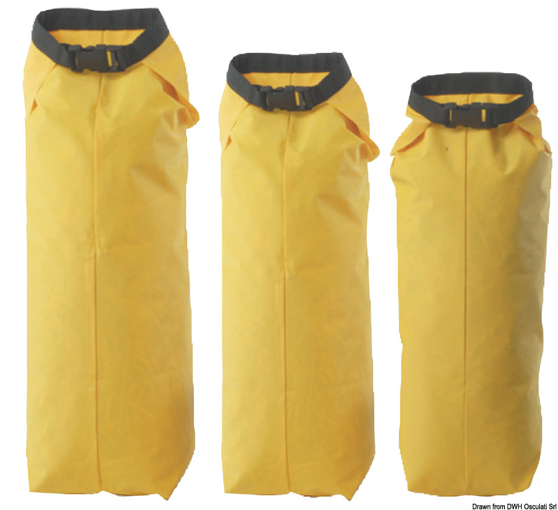 In tessuto poliestere rivestito in PVC giallo. Articoli personalizzabili su richiesta.