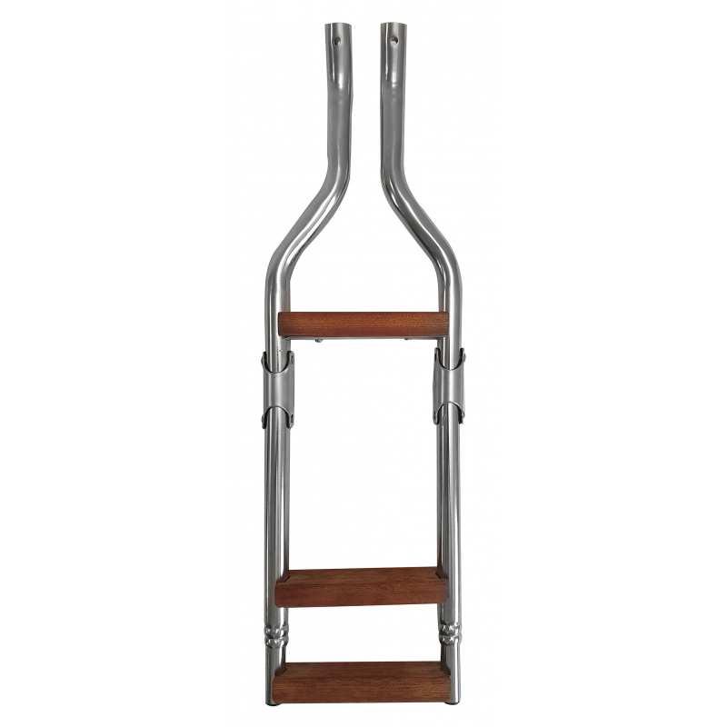 Scalettain acciaio inox Ø mm 25 pieghevole, gradini in legno marino.Per plancette articolo 3030422/31/38/39. Lunghezza mm. 600. Larghezza mm. 200.