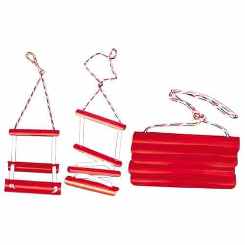 Scaletta in corda con gradini in policarbonato e tubi verticali che facilitano la risalita. Modello pieghevole, di minimo ingombro per facilitare lo stivaggio.