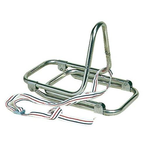 Scaletta  pieghevole in acciaio inox lucidato a specchio, a tre gradini completa di cinghie in nylon con fibbia per il fissaggio al pagliolo.