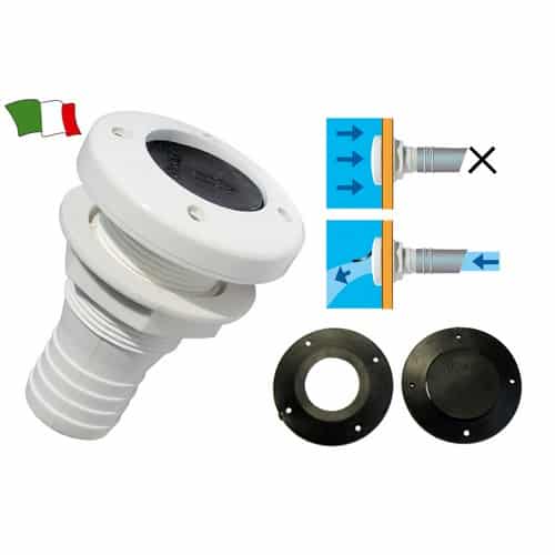 Scarico a mare in polipropilene con ghiera frontale completo di valvola di non ritorno in elastomero.