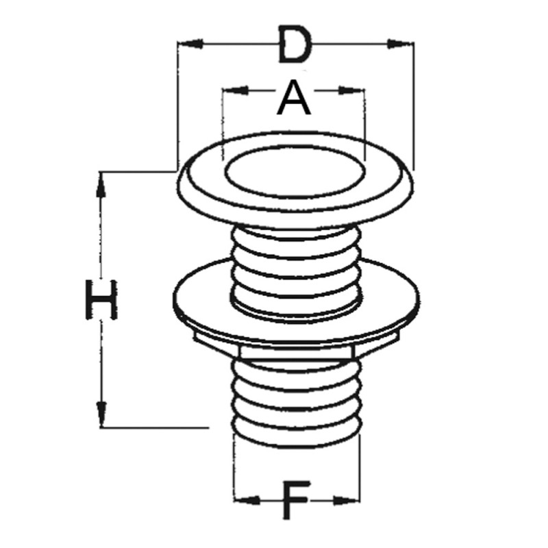 Scarico a mare in nylon bianco intermamente filettato e completo dighiera