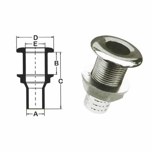 Scarico a mare in ACCIAIO INOX AISI 316 con portagomma.