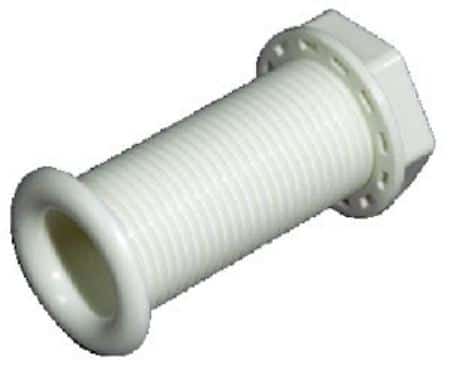 Scarico per pozzetti autosvuotanti in plastica bianca, a norma CE.