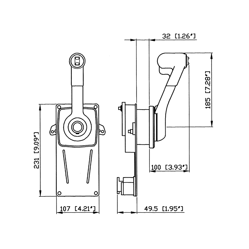 Monoleva ad azione doppia per il controllo del gas e dell’invertitore con dispositivo di blocco della leva. Adatta a qualsiasi tipo d’imbarcazione con motore fuoribordo, entrobordo e gruppi poppieri provvisti d’invertitore idraulico. Può essere montata sulla paratia destra o sinistra, orizzontalmente o verticalmente. II gruppo mozzo più leva é in alluminio pressofuso e verniciato. Provvista di frizioneper registrare I’acceleratore, regolabile dall’esterno. Tirando in fuori la leva si disinnesta I’invertitore durante I’operazione di riscaldamento del motore. Mediante I’interruttore di sicurezza X12 (optional), I’avviamento del motore si ottiene solamente con I’invertitore in posizione di folle. II modello B184 presenta nell’impugnatura un interruttore per trim che permette la regolazione dell’alzo piede nei motori fuoribordo e nei gruppi poppieri. Utilizza tutti i cavi per il comando motoreC2-C8-C14 e Mach0-Mach14. Con i cavi C5 – C16 e Mach 5 occorre il kit di adattamento K35 art. 4242069.