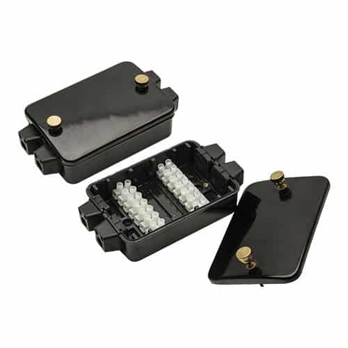 Scatola di derivazione stagna in plastica caricata con passacavi e guarnizione in gomma, per cavi fino a 4 mm.