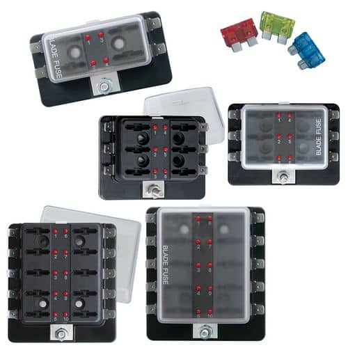 Cassetta portafusibile con spia luminosa a LED per evidenziare quale fusibile è interrotto.