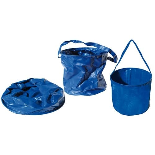 Secchio estensibile in materiale plastico. Si riduce a pochi centimetri di altezza quando non utilizzato.