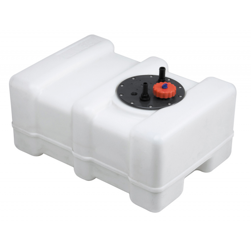 Serbatoio acqua in plastica. Completo di boccaporto ispezionabile laterale, tappo consfiato, portagomma Ø mm 16/19 e filetto 3/8, portagomma Ø mm 10/12 e filetto 3/8.