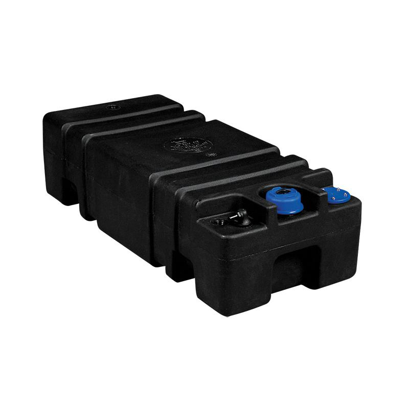 Serbatoio per carburante Modello Sogliola approvato Ri.Na., certificato CE N° 064596DG/009,. costruito in polietilene, completo di portagomma di pescaggio Ø mm.10 e sfiato Ø mm.16. Predisposto per il montaggio dei galleggianti VDO, VEGLIA, ecc..