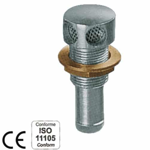 Sfiato gas carburante in ottone cromato con reticella antifiamma. Conforme alle normative R.I.Na.