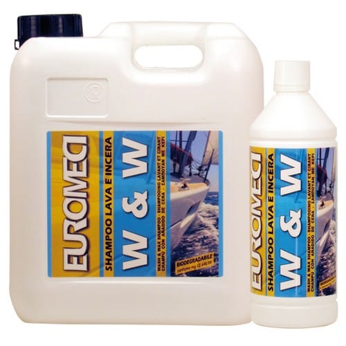 Shampoo per imbarcazioni, con l’aggiunta di speciali cere, pulisce a fondo e contemporaneamente dona all’imbarcazione protezione e brillantezza.