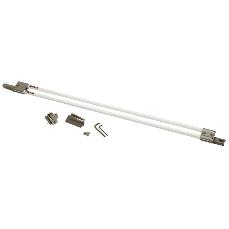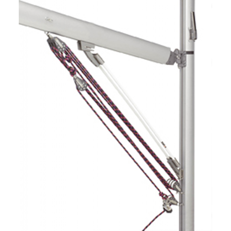 Sostiene il boma in tutte le situazioni prevenendo gli incidenti in caso di cattiva regolazione dell’amantiglio, molto leggero, con poca esposizioneal vento ed elevata reattività senza scosse ne regolazioni. Si adatta su tutti i tipi di albero o di boma, qualunque sia la loro sezione. Il kit è fornitocompleto per l’istallazione come complemeto dell’alabasso del boma esistente ed è composto da:• Nr. 2 tondini in fibra di vetro flessibile che presentano una resistenza sufficiente per sostenere il boma e la randa• Agganci in alluminio anodizzato per il fissaggio sull’albero e sul boma• Accessori di fissaggio in acciaio inox.Il Sostegno non presenta nessun pezzo mobile e non necessita di alcuna manutenzione. L’accurata rifinitura preserva le vele dai danni dellosfregamento.Molto flessuoso, il sostegno si inarca sotto latensione della scotta o dell’alabasso per tesarela randa al massimo o, al contrarioSenza tensione dell’antimaglio, regge il bomasopra l’orizzontale e permette di lascare perincurvare la vela, con vento di poppa, in casodi necessità .