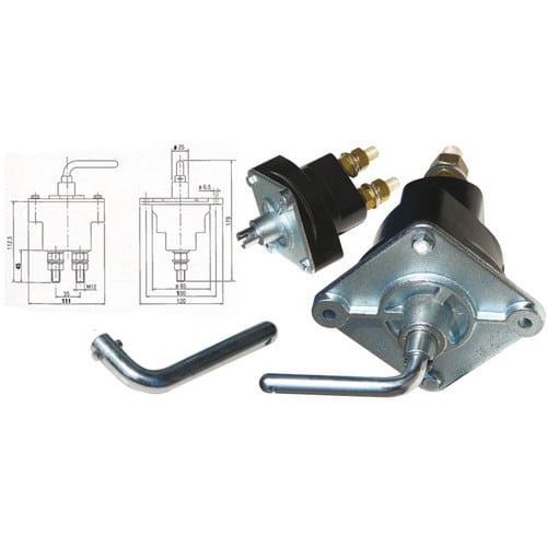 Staccabatteria ad azionamento manuale con leva estraibile e contatti in rame argentato.