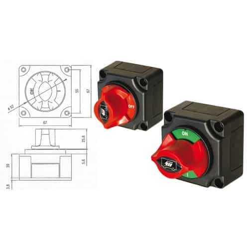 Staccabatteria con manopola rotante a 2 posizioni ON/OFF con contatti in rame argentato.