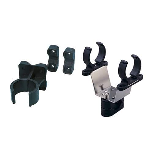 Supporto clips per boetta con attacco orientabile in Acciaio Inox a parete e a tubo da ø 22<>25mm.