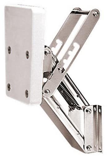 SUPPORTO motore a ribalta in acciaio inox lucidato a specchio. Funzionamento a ribalta con possibilità di regolazione intermedia, tramite una comoda maniglia.