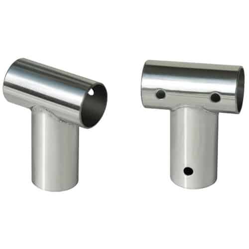 Supporto a T a 90 gradi in acciaio inox AISI 316 lucidato a specchio.