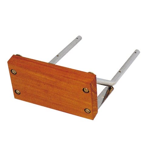 Supporto motore ausiliario in ACCIAIO INOX e tavoletta in legno marino, da applicare su plancette o piani di poppa.