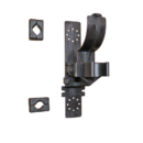 Supporto in PVC nero per salvagente anulare o ferro di cavallo con portaboetta. Si può installare su piano, a parete o su tubo Ø mm. 22/25 con apposito morsetto art. 1011001