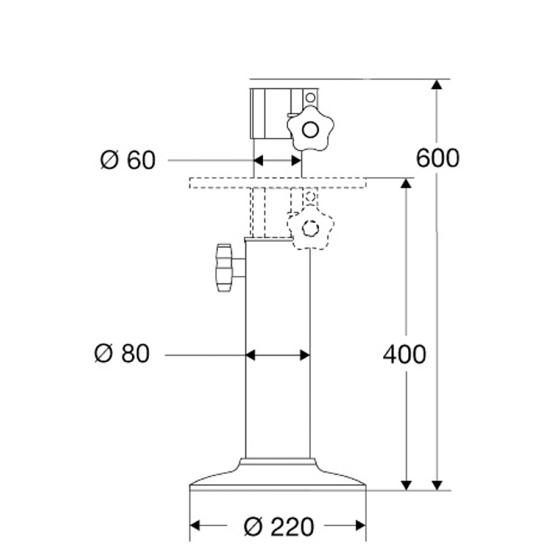 Supporto sedile o tavolo in lega leggera anodizzata, telescopico e girevole.