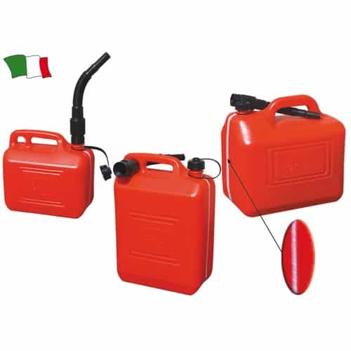 TANICA in robusto polietilene ( COMPLETE DI TRAVASATORE ) omologata R.I.Na, con sfiato di sicurezza per il trasporto del carburante.