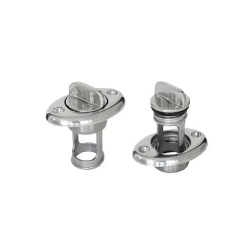 Tappo scarico per sentina vano motore in acciaio inox AISI 316 lucidato a specchio con sicurezza per il tappo.