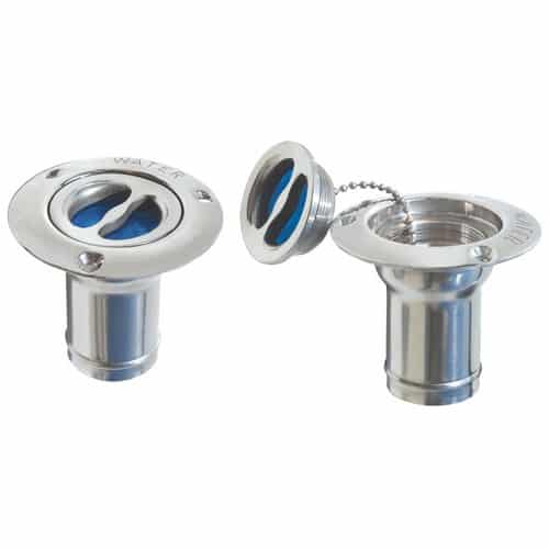 Tappo imbarco acqua in ACCIAIO INOX completo di guarnizione in PVC e catenella di sicurezza. Accessori per impianto carburante.