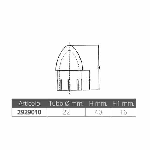 Tappo terminale in acciaio inox Aisi 316 per tubo da 22 mm.
