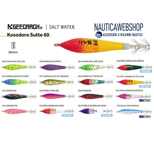 L’artificiale Tataki KOSODORO SUTTE 60 è adatto per la pesca dei calamari.Tataki ha un corpo in schiuma di poliuretano rigido che fornisce un’eccellente stabilità in acqua e il corpo è dotato di un effetto luminoso in modo che attiri i calamari nelle ore notturne.