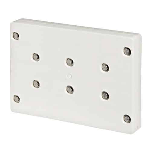 Tavoletta inplastica di colore bianco per supporto motore completo di bulloni e dadi per il fissaggio.