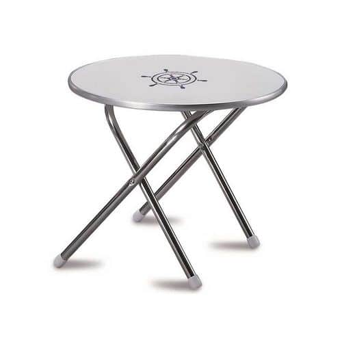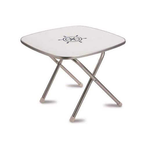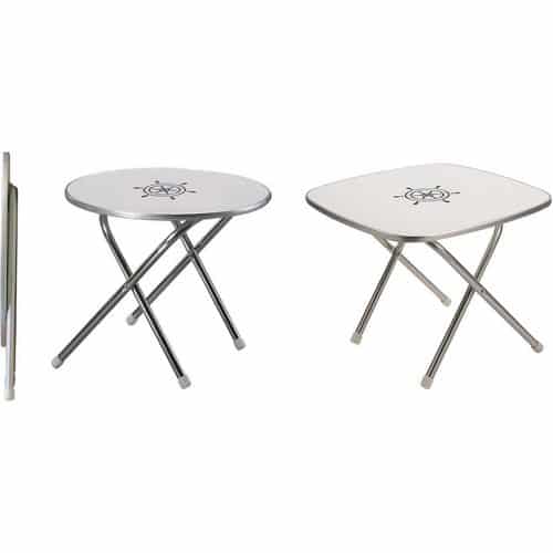 Tavolino di servizio pieghevole Marathon con robusto telaio in alluminio anodizzato perfettamente finito. Piano tavolo in Melamina di qualità superiore resistente a umidità e raggi UV.