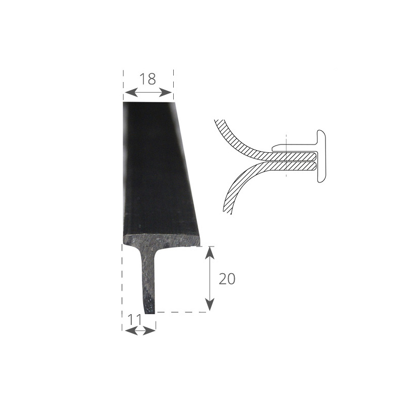 Supporto a TEE in duralene semirigido per L. 35. Barra da 2 mt dim. mm 20 x 18.