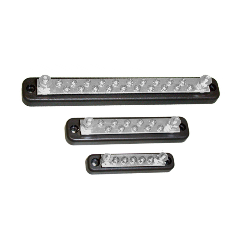 Terminale di connessione base in ABS, barra di distribuzione in rame stagnato, perni e dadi in acciaio inox.
