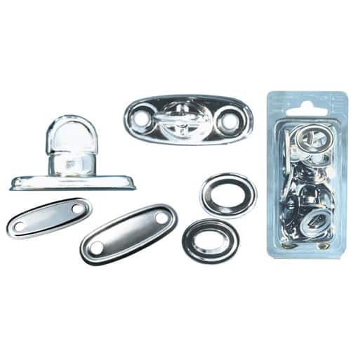 Tornichetto cromato, completo di piastrina. Blister da 1 kit.