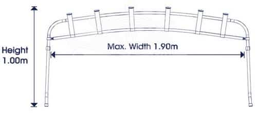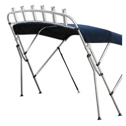 Progettata per essere abbinata a qualsiasi capottina con tubi Ø 25 mm avente larghezza massima fino a 1,90 m (per tendalini più stretti la torre è regolabile in larghezza). Fabbricati in alluminio anodizzato completa di 6 portacanne.