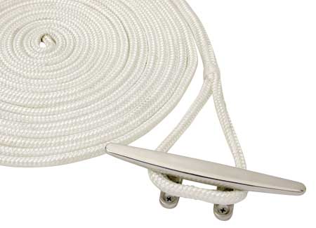 Treccia da ormeggio di colore bianco o nero con gassa con lavorazione in doppia treccia di poliestere alta tenacità. Non galleggia.