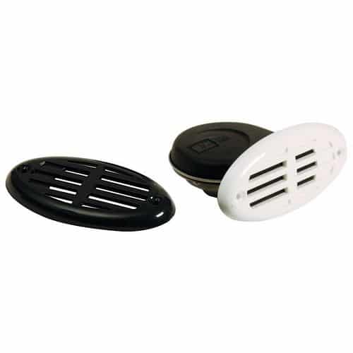 Tromba da incasso a scomparsa con carcassa in acciaio inox e mascherine in abs bianco o nero intercambiabili. Dotazione di sicurezza avvisatore acustico elettrico.