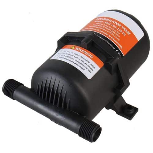 - precaricato a 0,7 bar – 10 PSI, ma può essere caricato tramite l’apposita valvola con un normale compressore, per essere adattato a qualsiasi pompa a pressostato