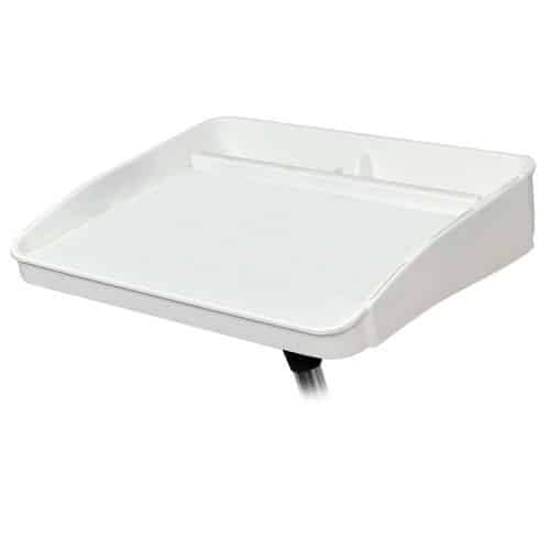 Vassoio porta esche e pulizia del pesce fabbricato in polietilene con supporto in alluminio regolabile e boccola conica.